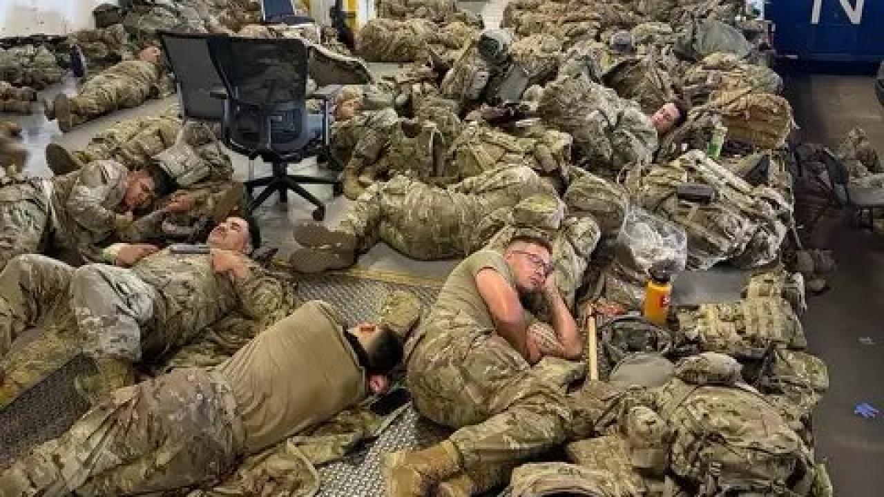 California Newsom Valisi X hesabı, ABD Ulusal Muhafızlarının yere uzanan bir fotoğrafını paylaştı.